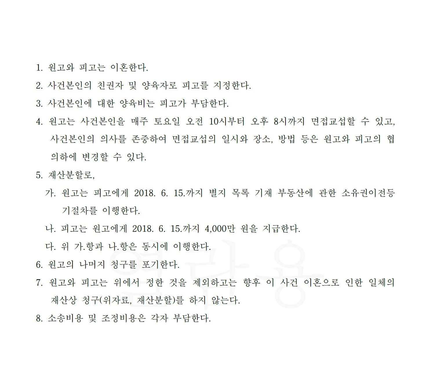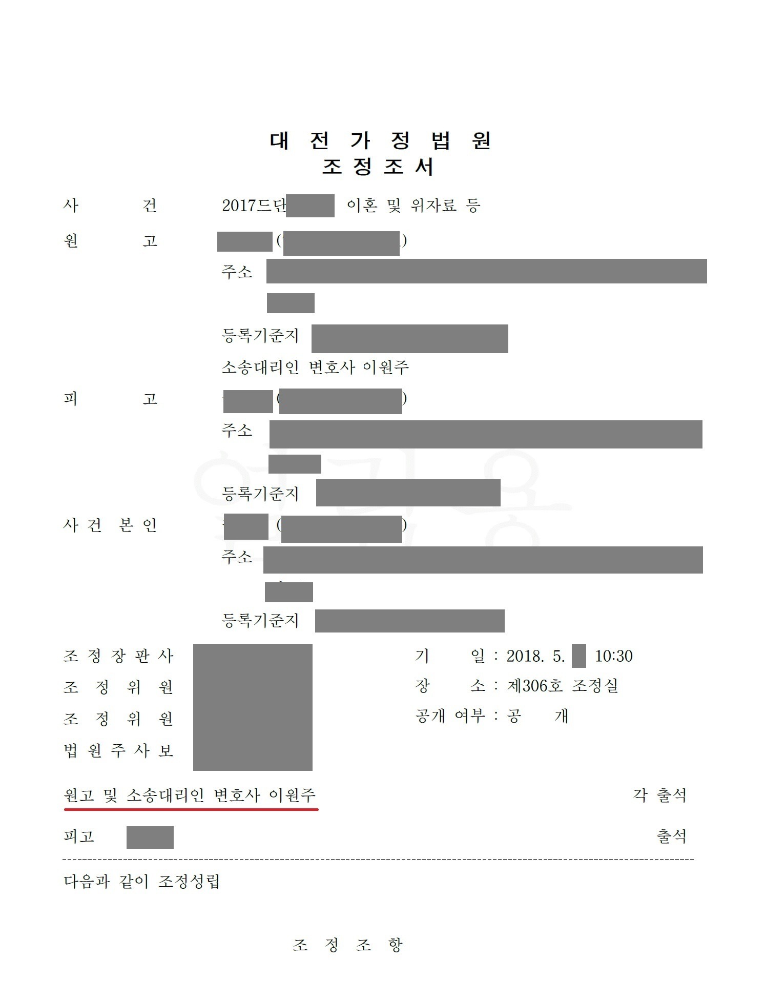 원고가 원하는 내용으로 조정 성립시킨 성공사례입니다