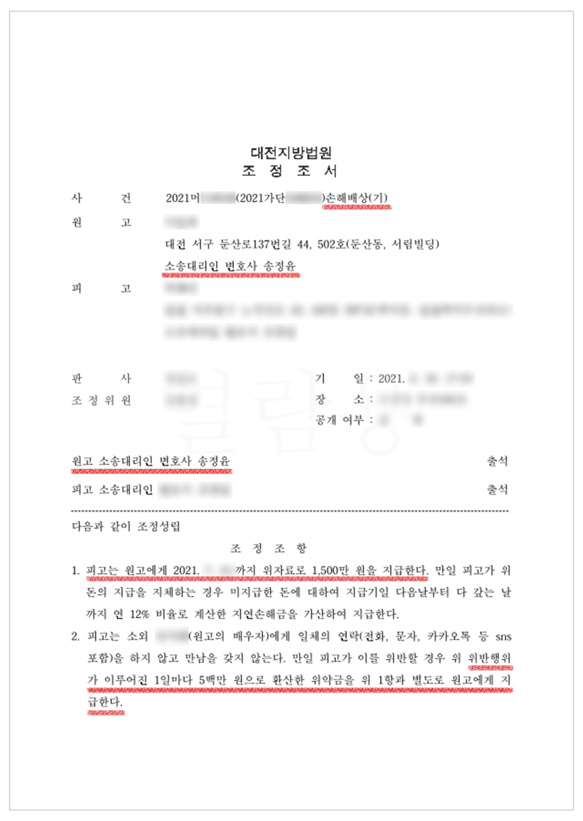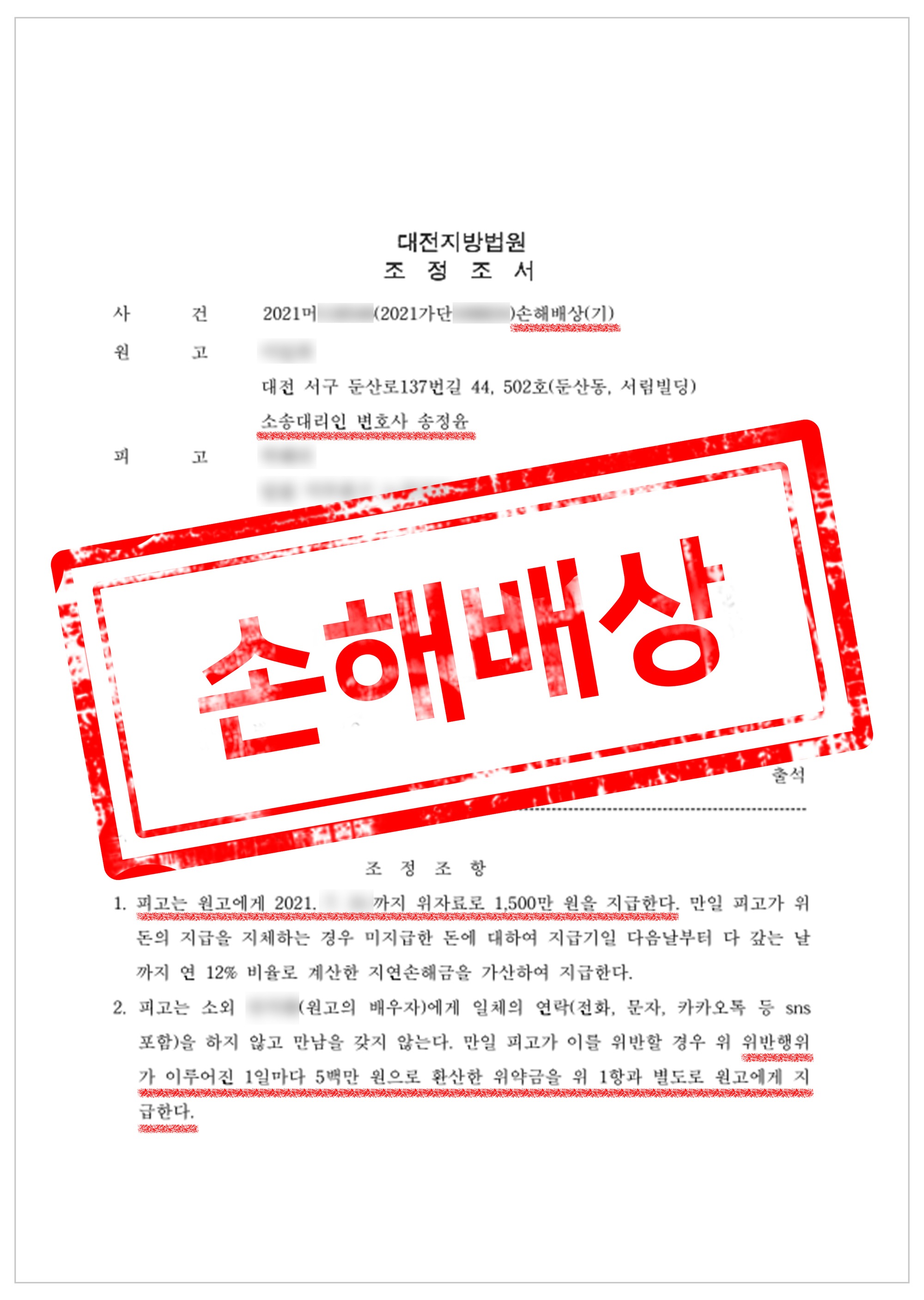 상간녀 손해배상청구소송 승소사례